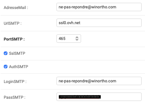 Les informations renseignées ici sont utilisées pour envoyer par mail des documents depuis WinOrtho via le protocole SMTP